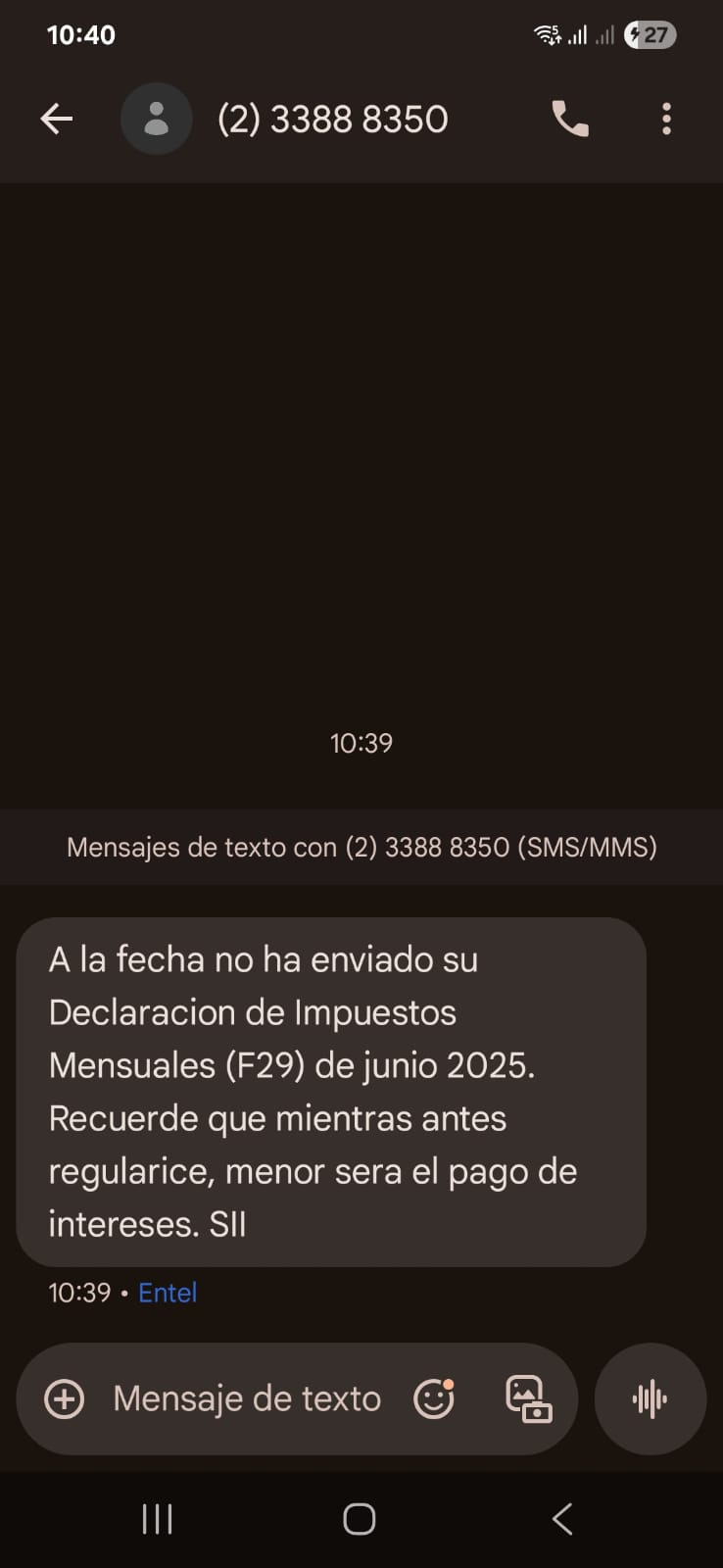 Yo al menos primera vez que me entero que te mandan mensajito de texto para cobrarte el F29 😅