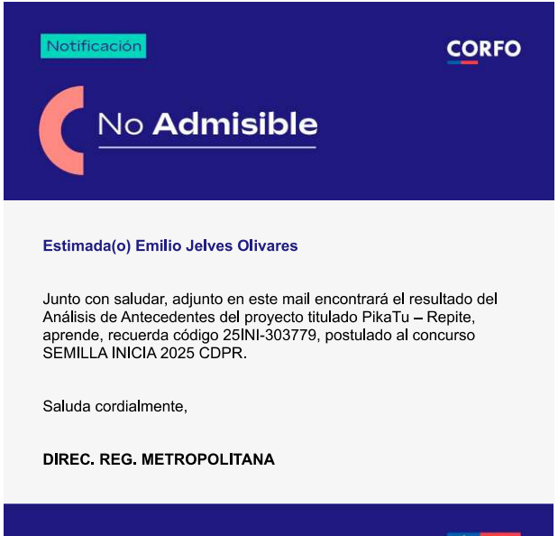 Además, te dejo también la respuesta oficial que me envió Corfo, para que veas el tipo de feedback que entregan.