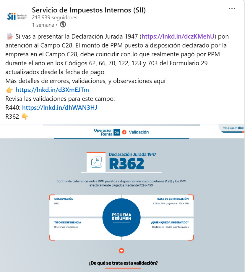El SII publicó esto en LinkedIn la semana pasada.