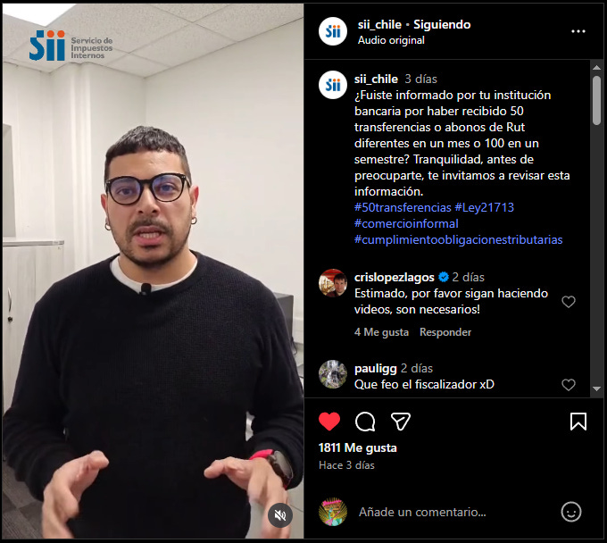 el SII sube un video en Instagram con un fiscalizador tratando de ponerle paños fríos al incendio: