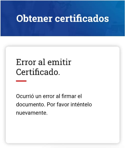 👉 “Error al emitir un Certificado”