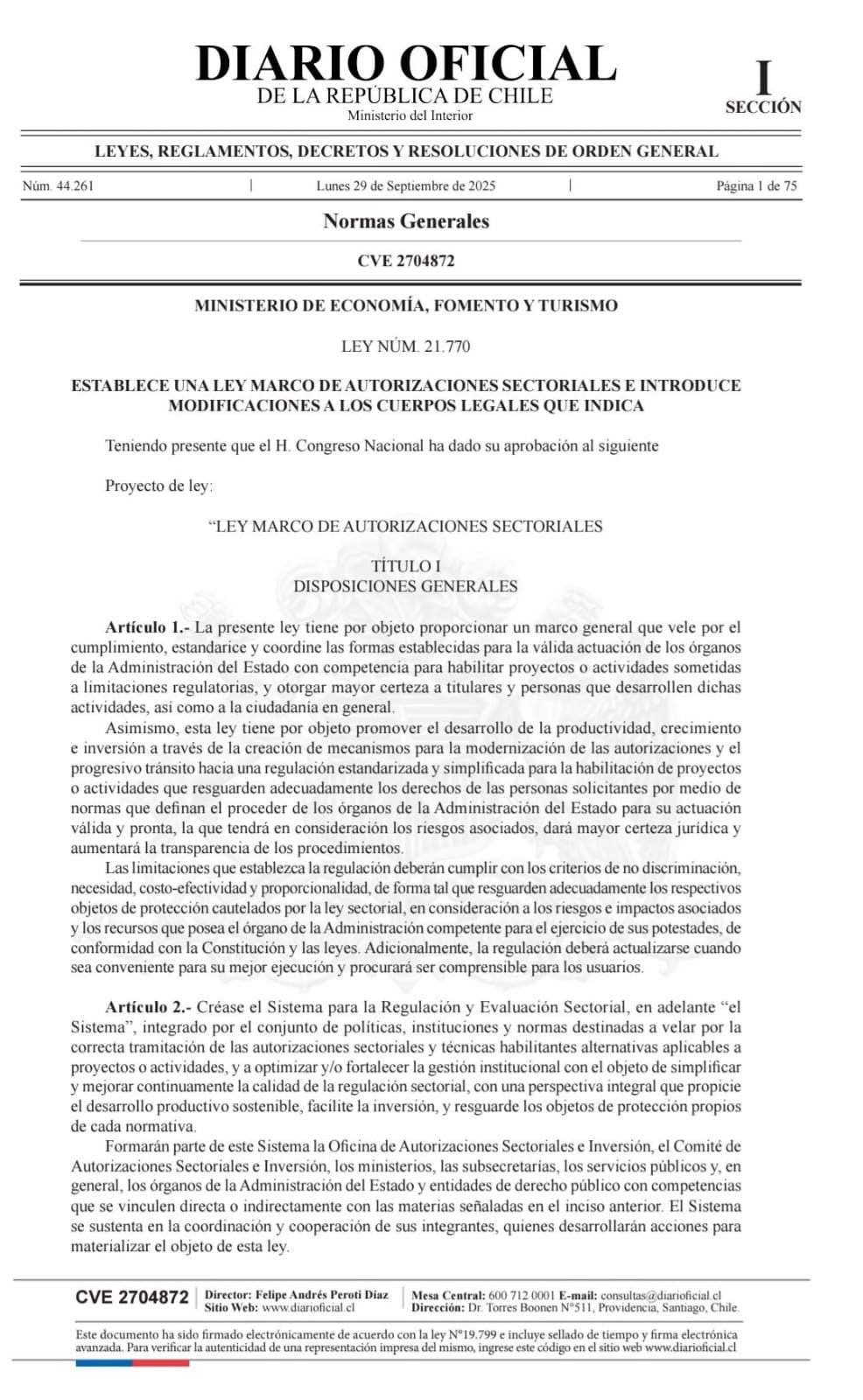 ➡️ Si quieres leer la noticia completa en Emol: Ley que reduce la “permisología” en Chile