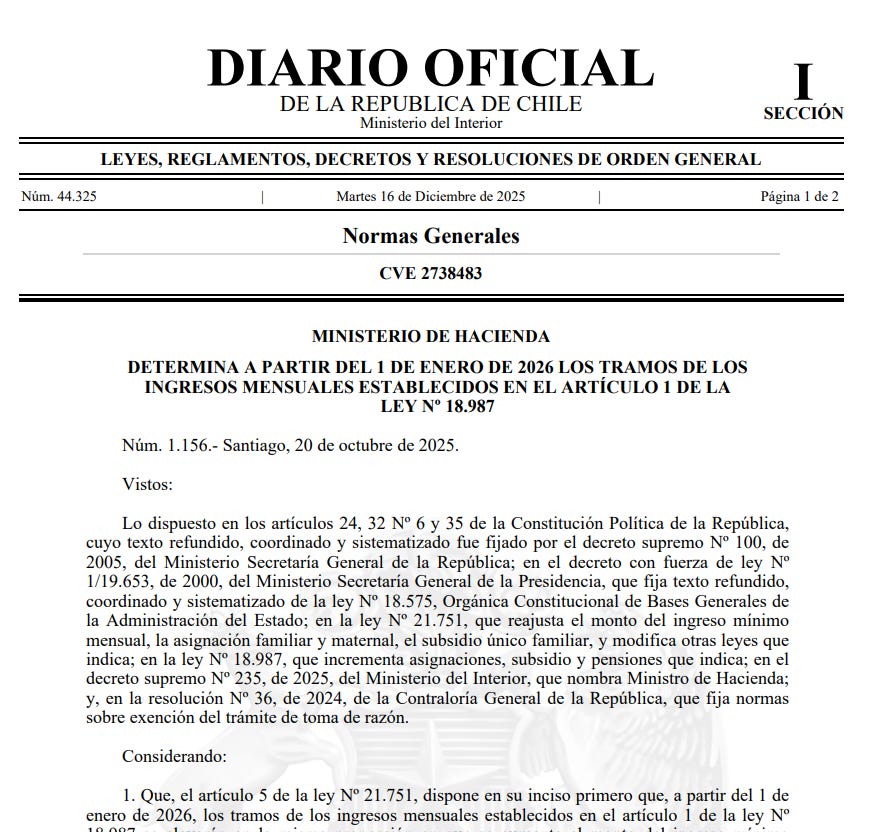 ➡️ Si quieres leer el decreto completo publicado en el Diario Oficial (para sufrir con fundamento): Decreto 1.156 del Ministerio de Hacienda - Chile.