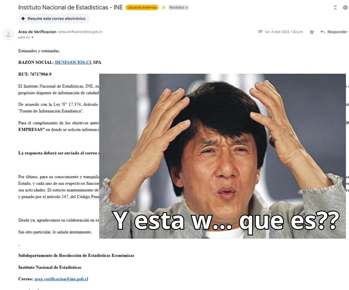 Un día llegó un correo del Instituto Nacional de Estadísticas (INE), medio raro, pidiendo que llenáramos un Excel y que dejáramos varios datos.