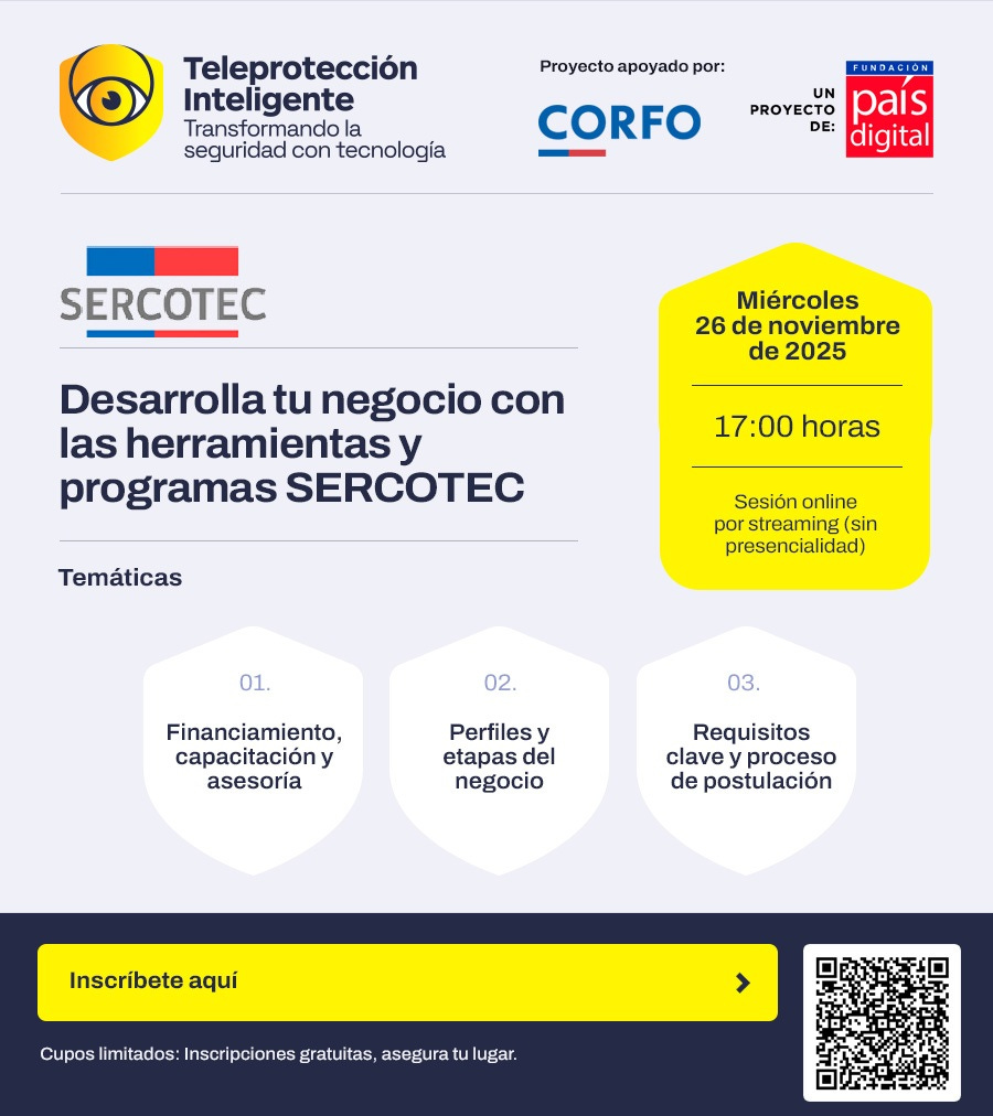 Sercotec y País Digital harán una Masterclass online gratuita este miércoles 26 de noviembre a las 17:00 hrs.