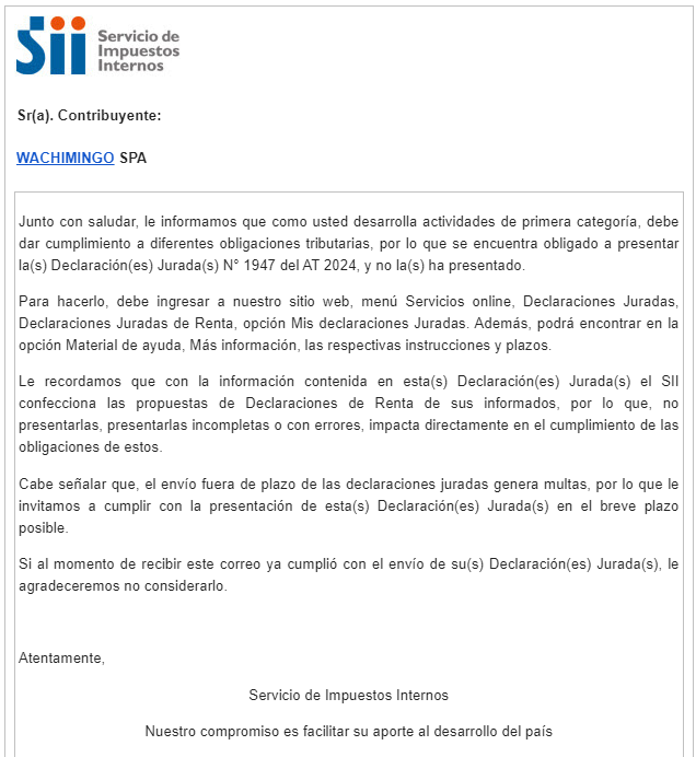 Ahora… es penca cuando te llegan esos correos y a tu empresa le fue mal. Tienes la empresa ahí secándose al sol ☀️, sin movimiento… sin usarla. Te fue re mal, no hubieron ventas, elegiste mal socio, no sé. Pero la empresa está muerta.